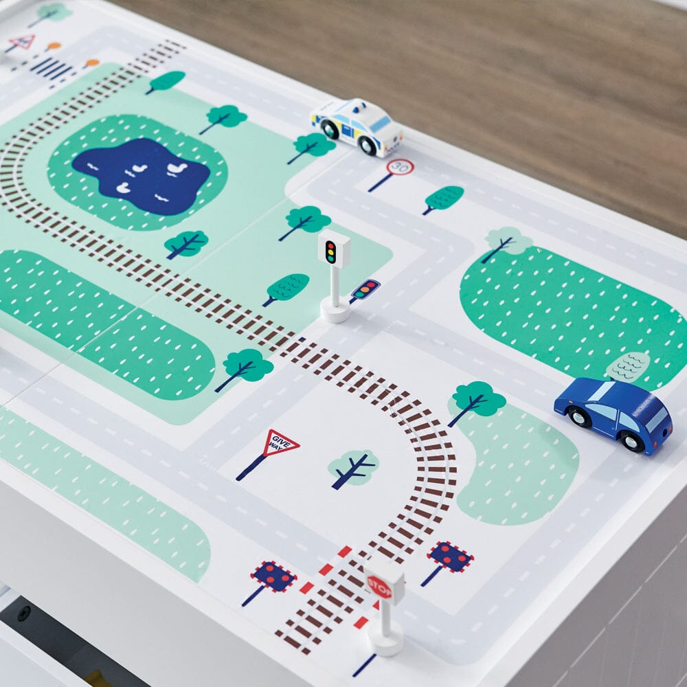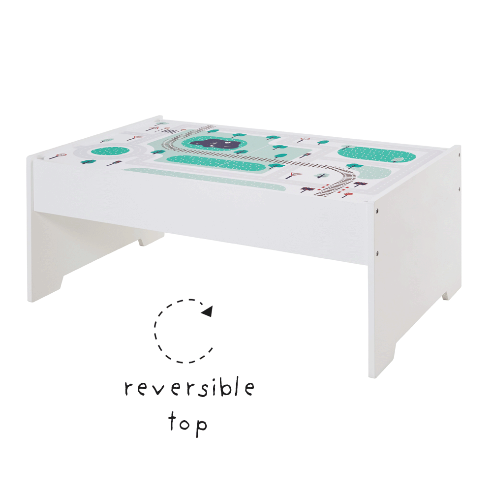 Create a fun space for play with the help of this sturdy kids’ play table. It boasts a gorgeous illustrated play map and the reverse side of the table top is painted white so you can easily turn it over, once the kids have gone to bed. There’s lots of room for storage underneath, too.