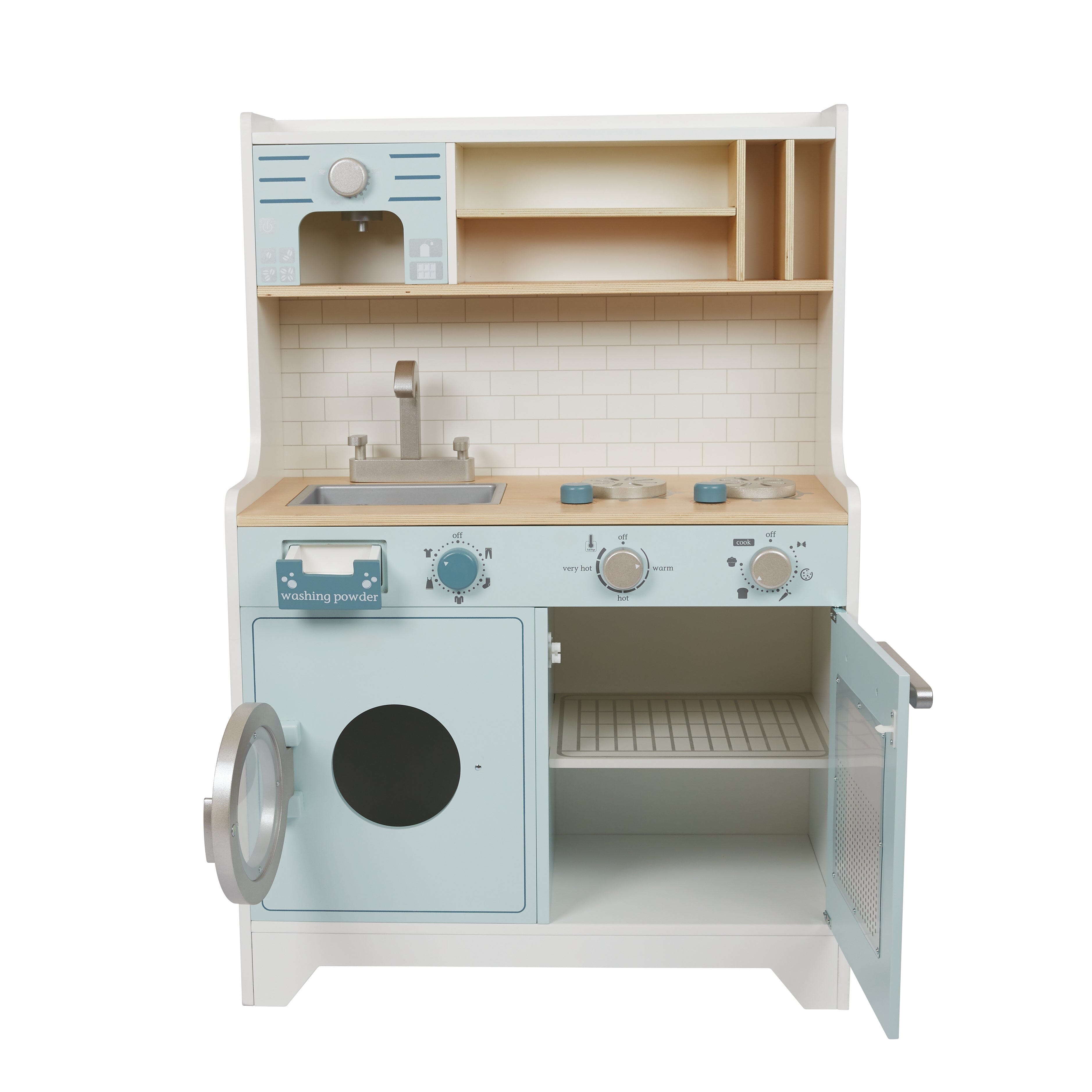 Our Coffee Bean Wooden Toy Kitchen has everything budding chefs need to cook up a storm. There’s plenty of shelf space, a sink, coffee maker, oven and washing machine, plus illustrated dials that click when they’re turned. We’ve designed this piece to blend into interiors so it’s a great option if you don’t have a separate playroom; the combination of muted petrol blue and natural wood is so chic!