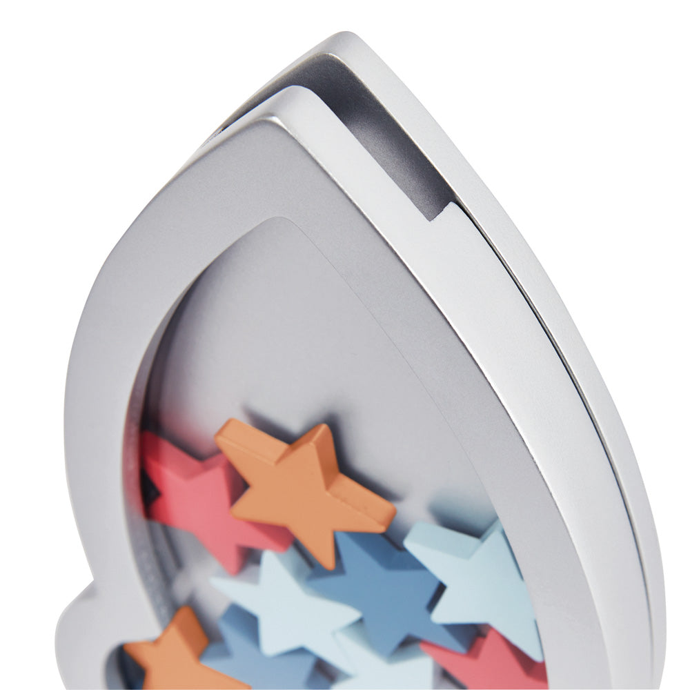 It has a painted finish and clear panel so children can see it filling up. It comes with 16 multi-coloured stars and is held together by magnets making the front and back easy to pull apart to retrieve the stars.