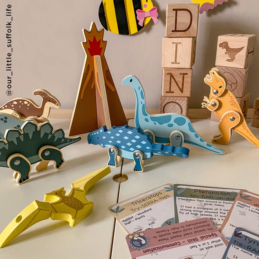 Let their imaginations run wild; our Wooden Dinosaur Play Set is perfect for youngsters with an interest in huge toothsome reptiles. There’s a raging volcano to slot together and plants to set the scene, plus a whole host of dinosaurs complete with moving parts and painted detail. It also comes with7 exciting factual flashcardsand a handy storage bag to keep all pieces together and safe.