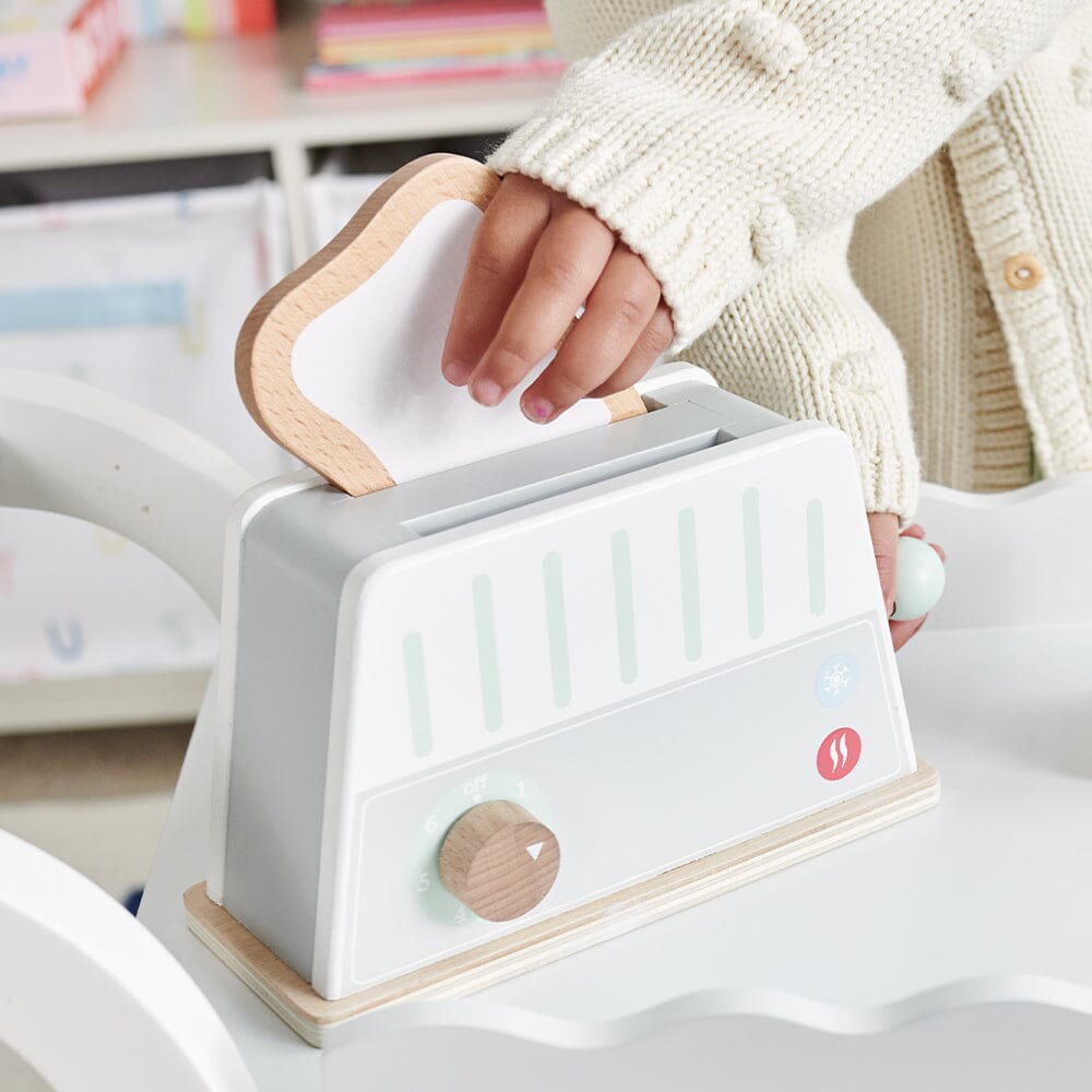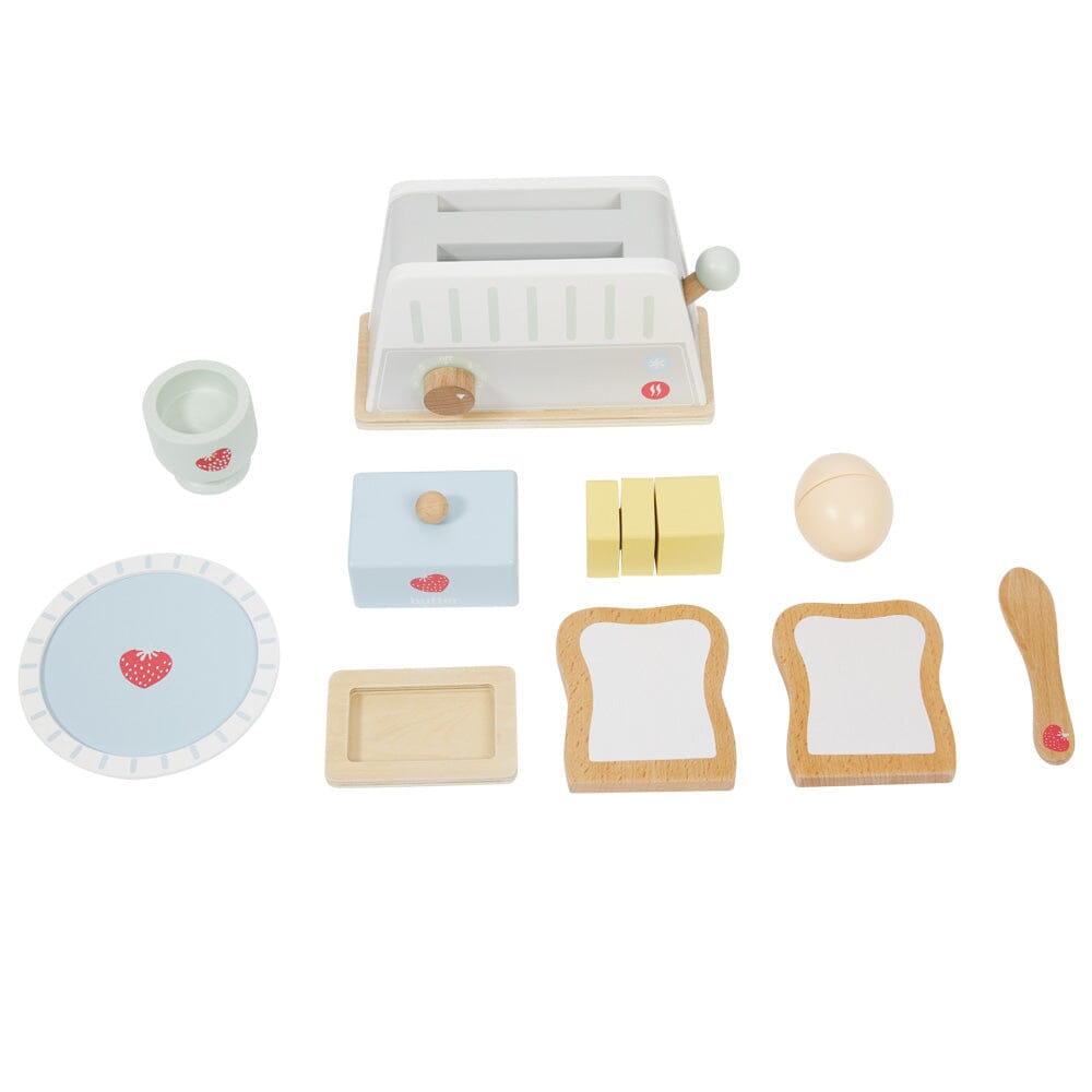 Children love this inspirational wooden breakfast set, thanks to its universal appeal and lots of potential for play. Pop the wooden slices of bread into the toy toaster, slice a little butter from the dish, tap your boiled egg open, and breakfast is ready!